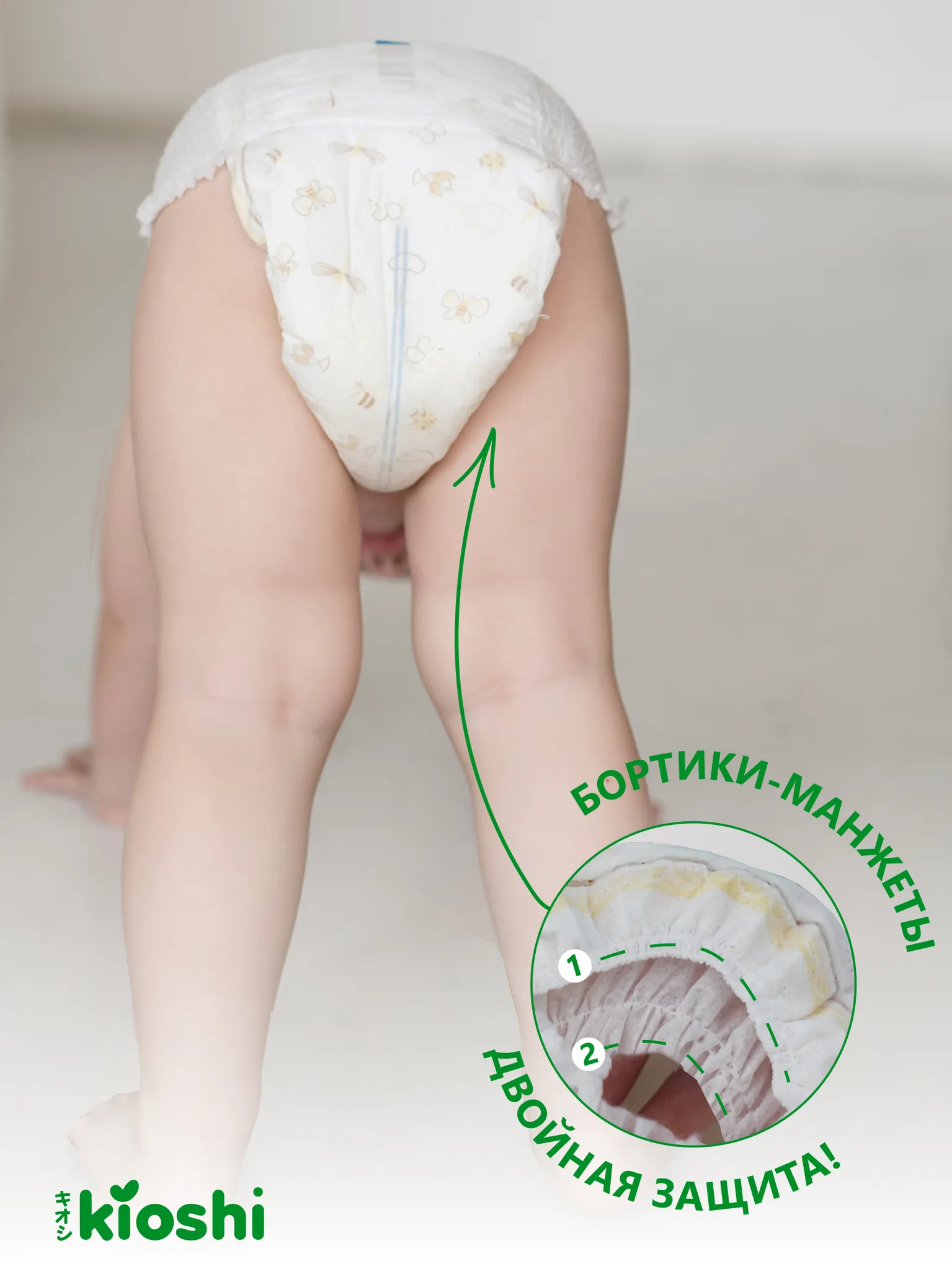 Памперсы и детские трусики ультратонкие KIOSHI имеют 2 слоя японского абсорбента, который закреплен нано-нитями. Благодаря этой технологии влага внутри трусиков не скапливается в одном месте, а равномерно распределяется и превращается в гель. Трусики не провисают и не комкуются между ножек. 3D-технология создает дополнительную защиту от протекания.