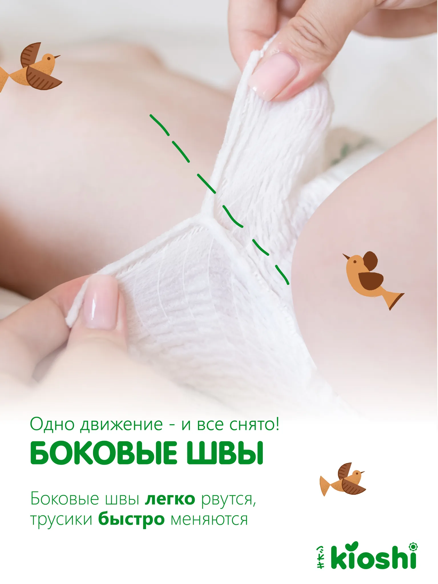 Ультратонкие подгузники-трусики ХХL подходят для детей весом 16 кг, 34 штуки в упаковке. Также у KIOSHI широкая размерная сетка от подгузников для новорожденных до подгузников-трусиков на 16+ кг.