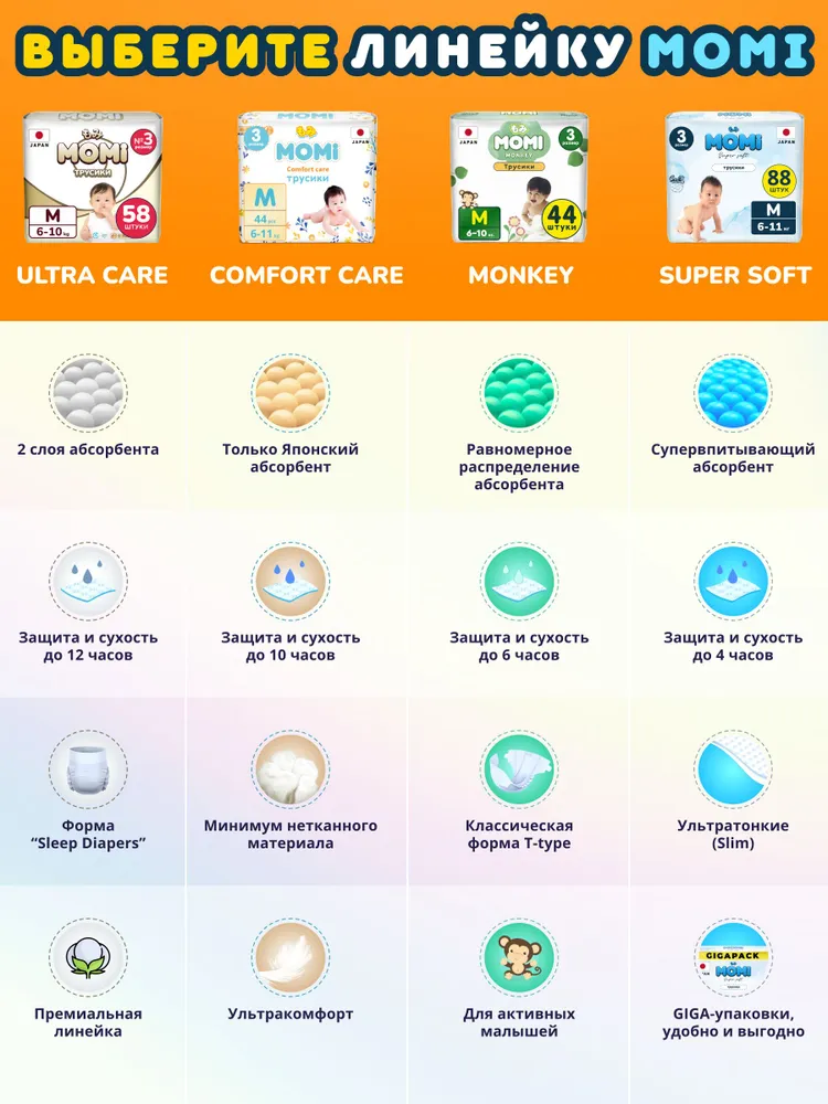 Momi - это бренд, который объединяет японскую технологию, качество и любовь к малышам.