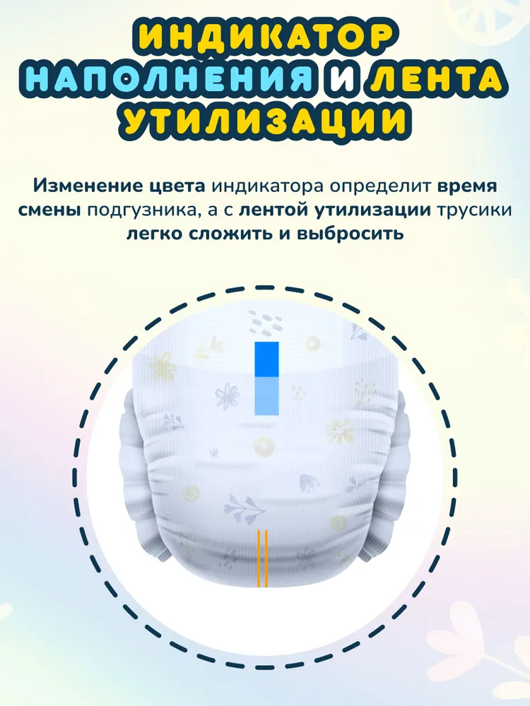 - Индикатор влаги, который помогает отслеживать наполнение подгузников;