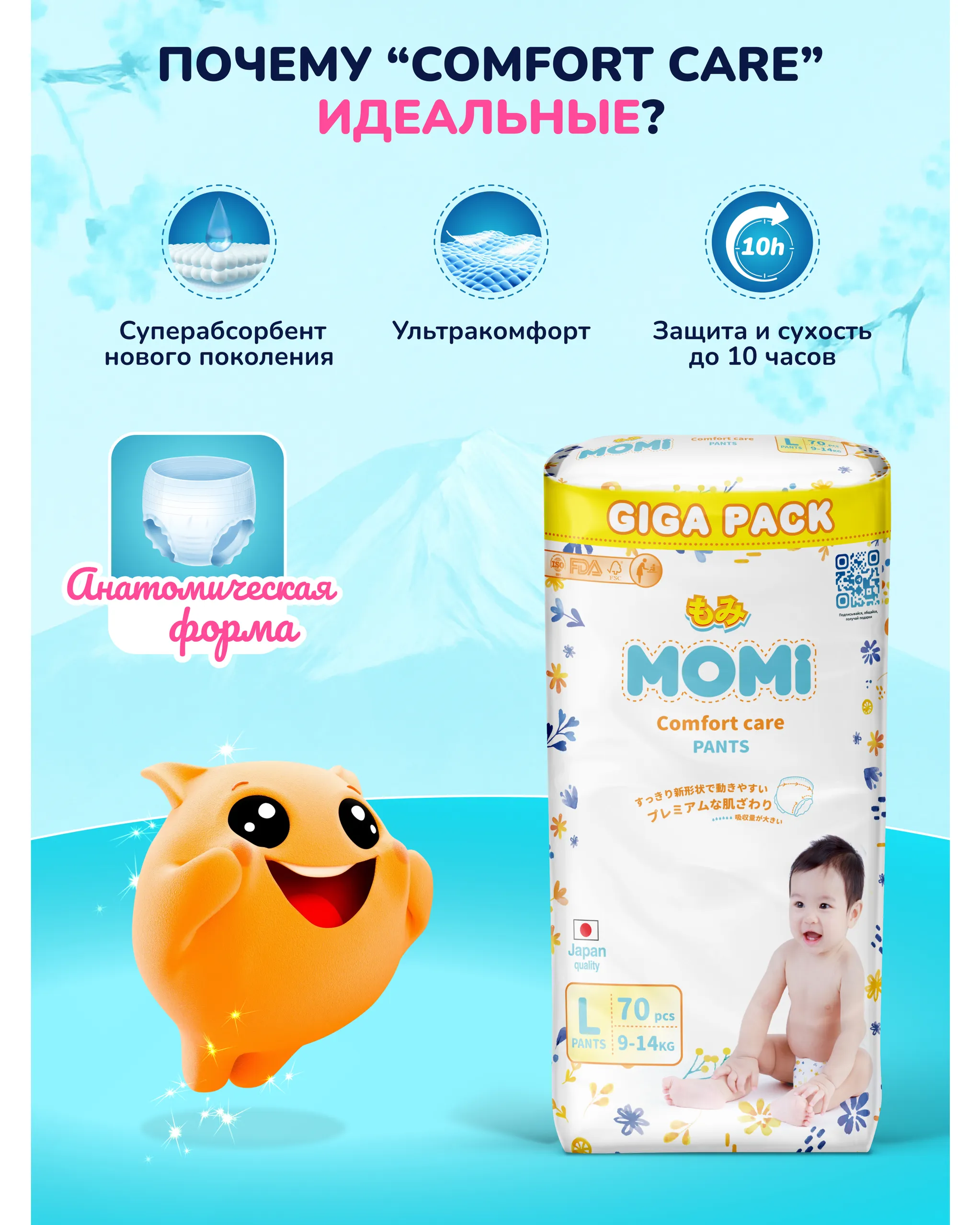 Momi Comfort Care это не только подгузники, но и символ заботы о самом драгоценном моменте в жизни Вашего ребенка - детстве.