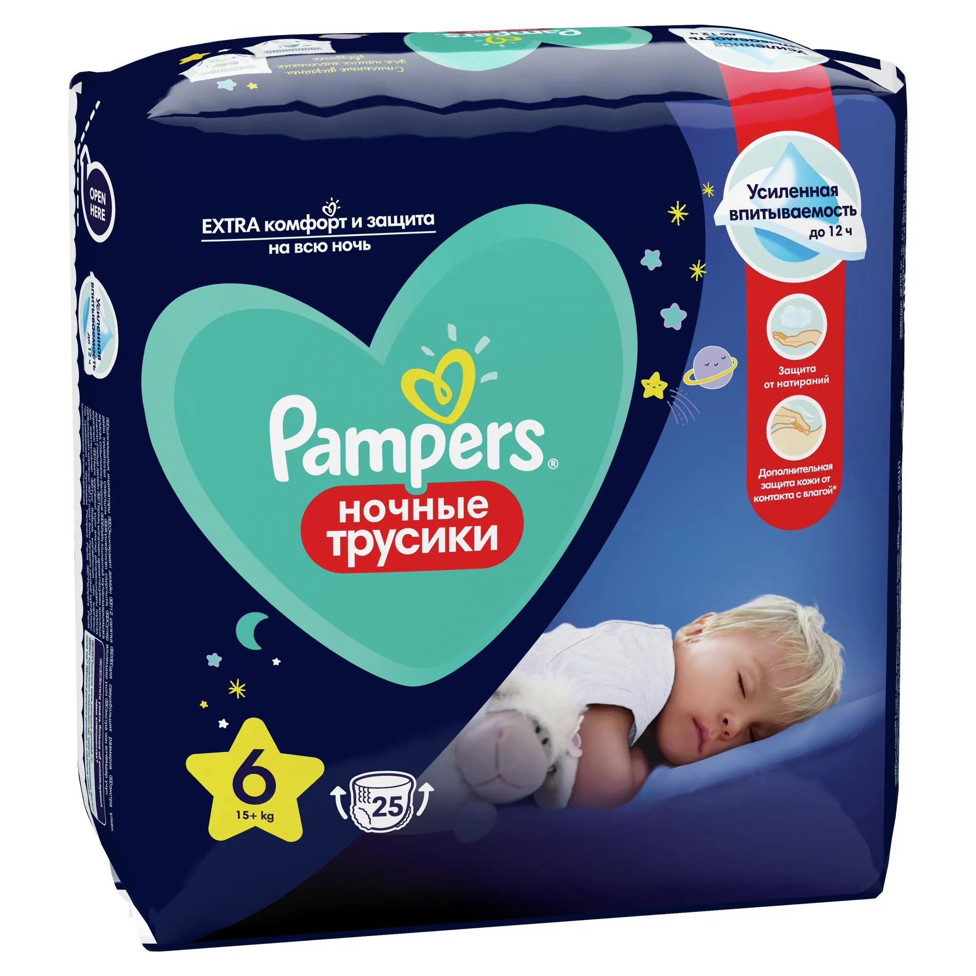 НОВИНКА от Pampers! Вы хотите, чтобы малыш спокойно спал целую ночь? Попробуйте наши новые ночные трусики Pampers для экстракомфорта и защиты на всю ночь! Супермягкий эластичный поясок и мягкие бортики вокруг ножек защищают нежную кожу малыша от протеканий и натираний со всех сторон. Усиленная технология мгновенного впитывания дополнительно защищает кожу от контакта с влагой, обеспечивая проверенную сухость Pampers до 12 часов. А стильные ночные дизайны трусиков сделают подготовку ко сну ещё приятнее!