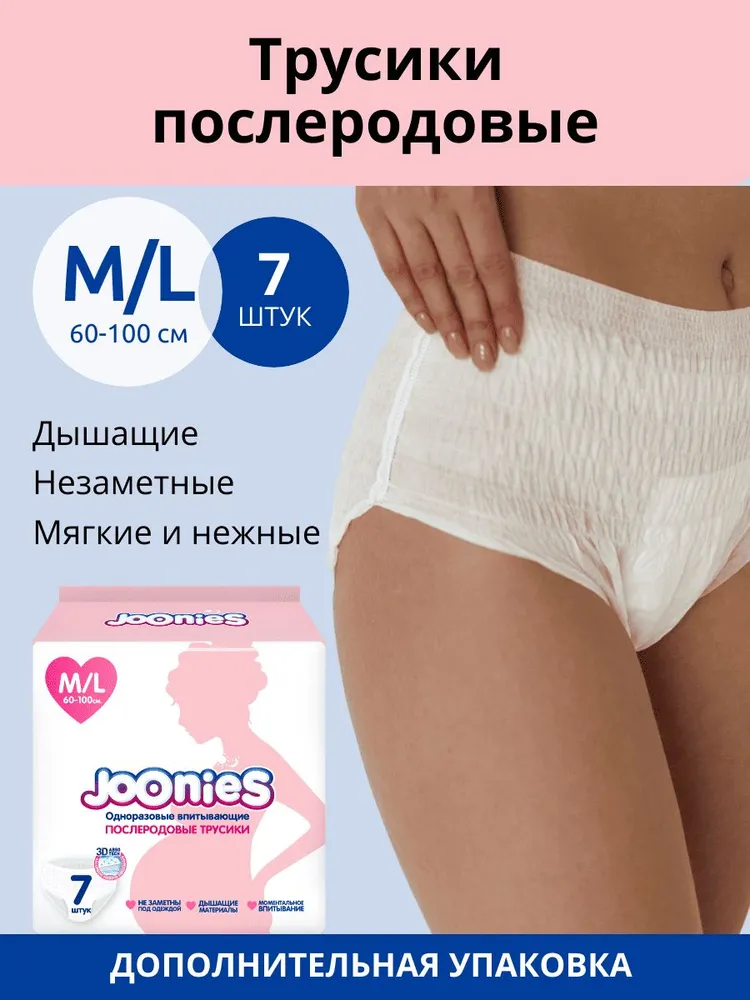 Одноразовые послеродовые трусики JOONIES! Ультрамягкие, нежные, тонкие и СУПЕРвпитывающие. Впитывают до 400 мл жидкости. До 12 часов сухости и защиты!