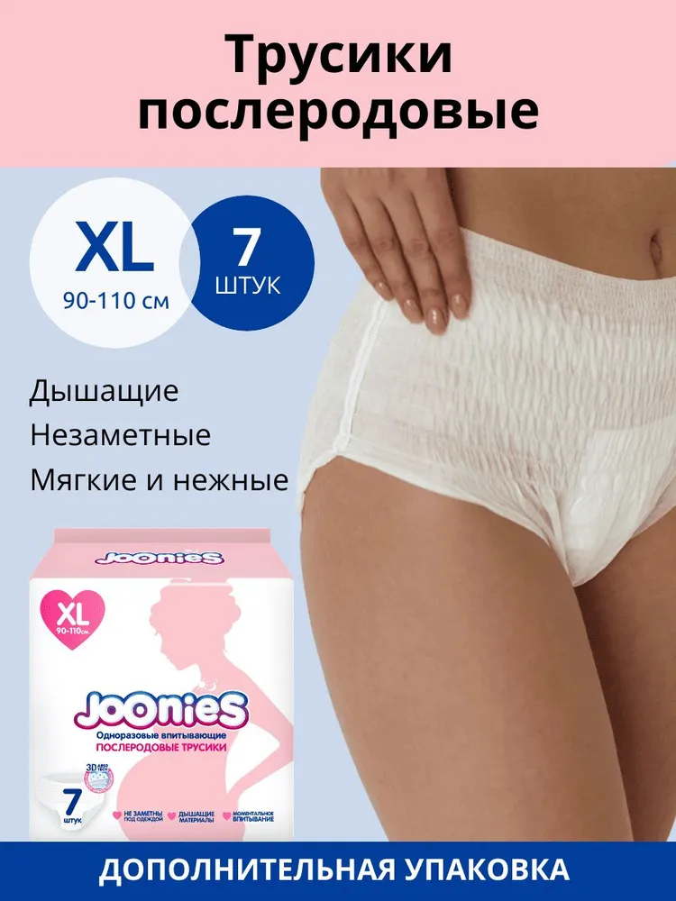 Одноразовые послеродовые трусики JOONIES! Ультрамягкие, нежные, тонкие и СУПЕРвпитывающие. Впитывают до 400 мл жидкости. До 12 часов сухости и защиты!