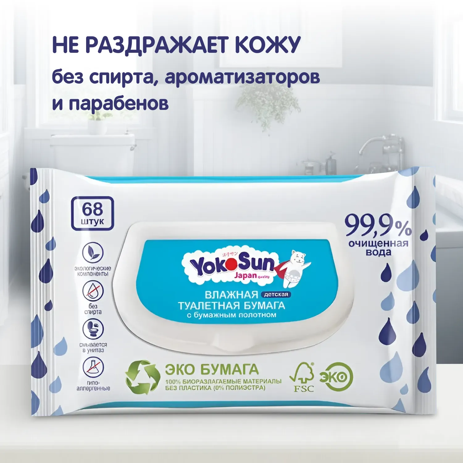 Детская влажная туалетная бумага YokoSun – супер-мягкая влажная туалетная бумага для самых маленьких и детей всех возрастов. Благодаря своей текстуре заметно мягче обычной туалетной бумаги и экономнее расходуется. Она бережно очищает нежную кожу малыша, не вызывая раздражения и покраснений, даря исключительную чистоту и комфорт.