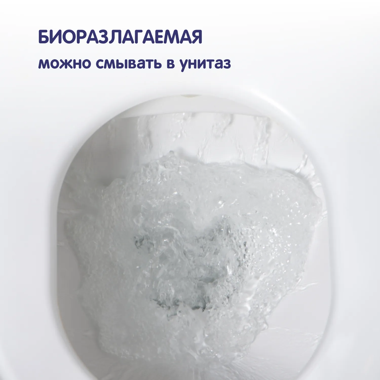 Растворяется в воде и разлагается в природных условиях. Можно смывать в унитаз после использования.