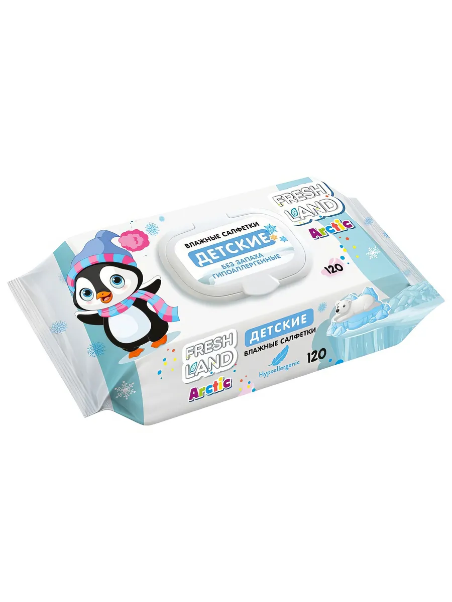 Влажные салфетки FRESHLAND АРКТИКА - 120 штук. Мягкие, плотные гипоаллергенные влажные салфетки бережно очищают нежную детскую кожу, увлажняют и питают, предотвращая раздражения и воспаления.