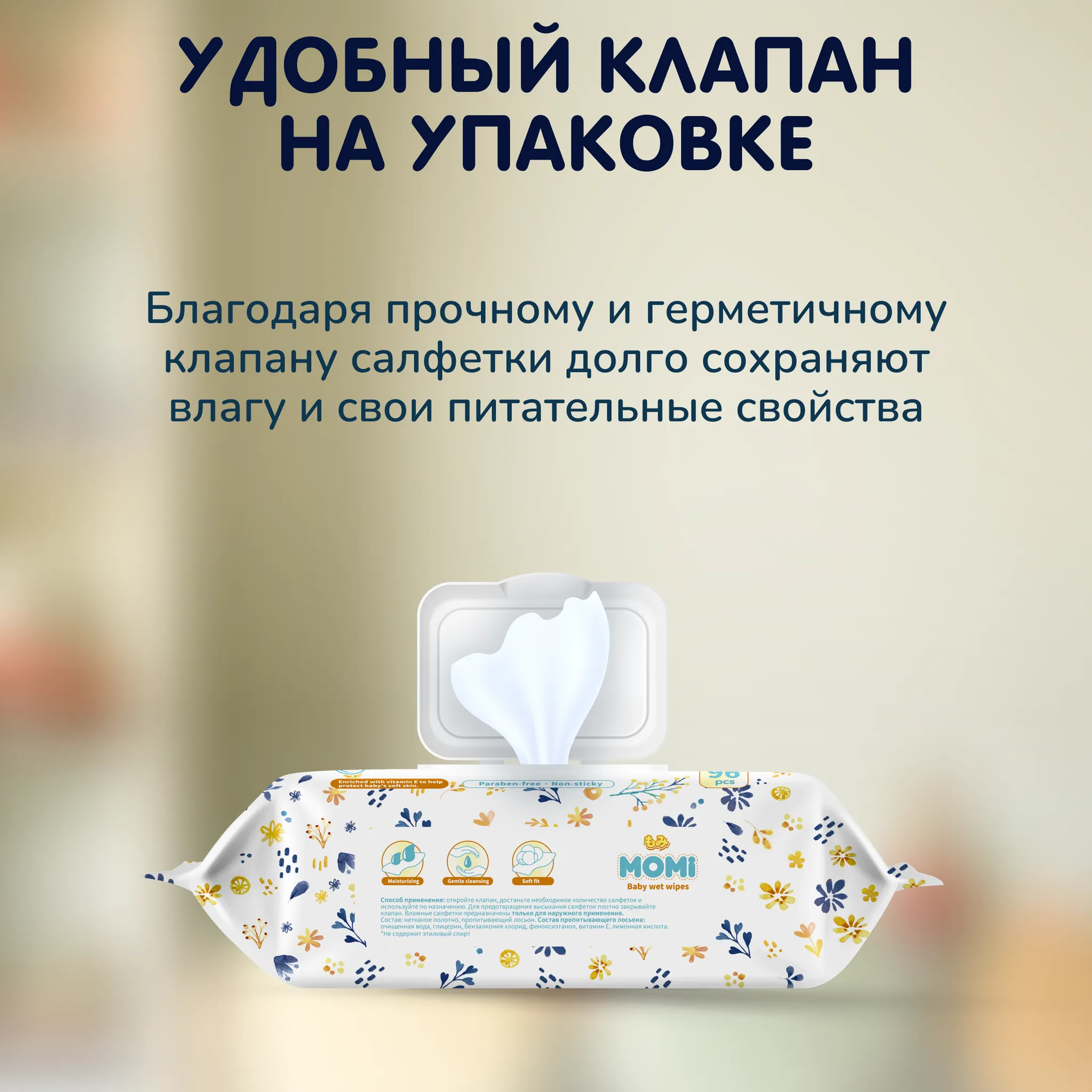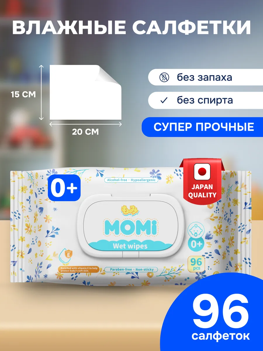 Детские влажные салфетки MOMI — это незаменимый помощник в уходе за малышом. Они обогащены витамином Е, не содержат спирта, запаха и парабенов.