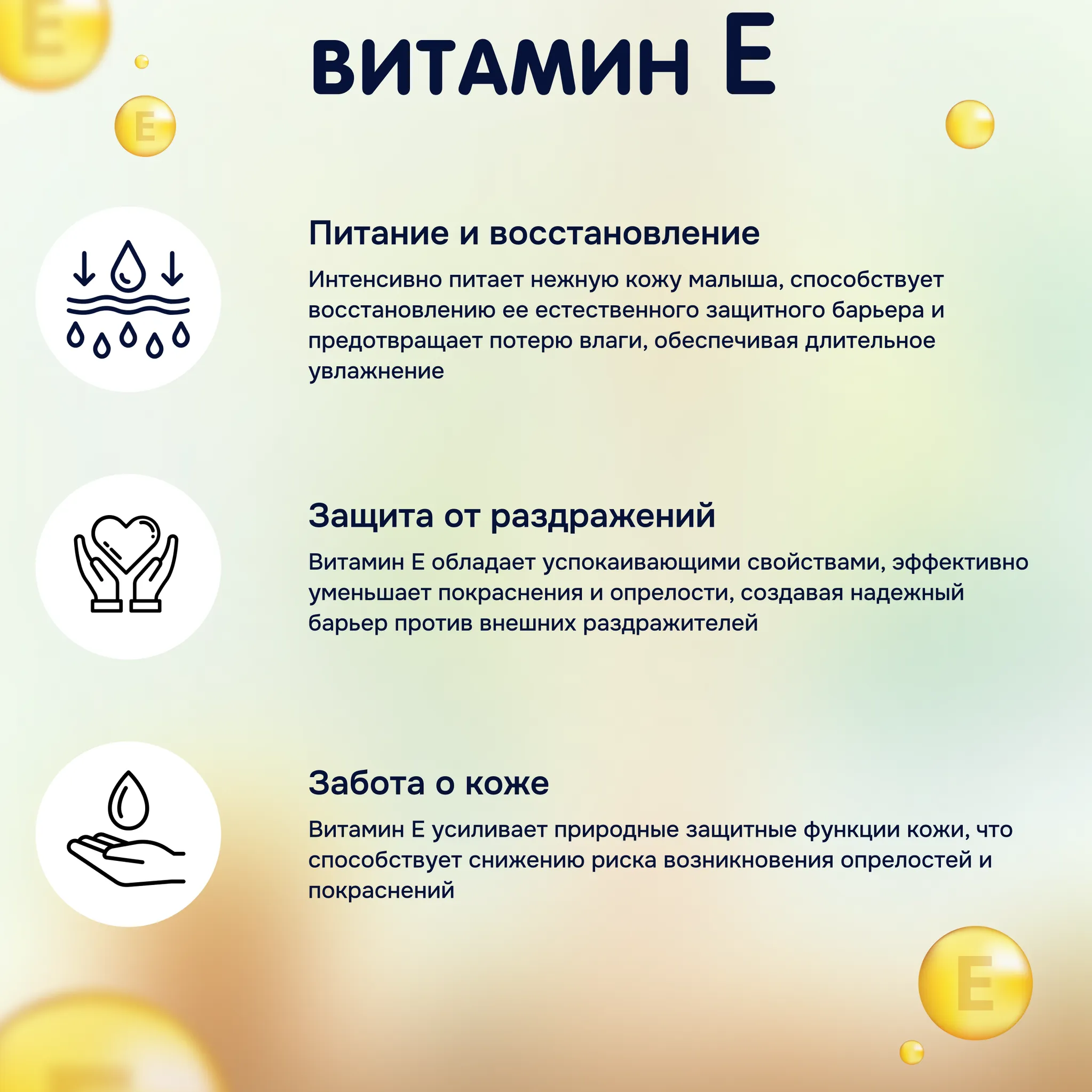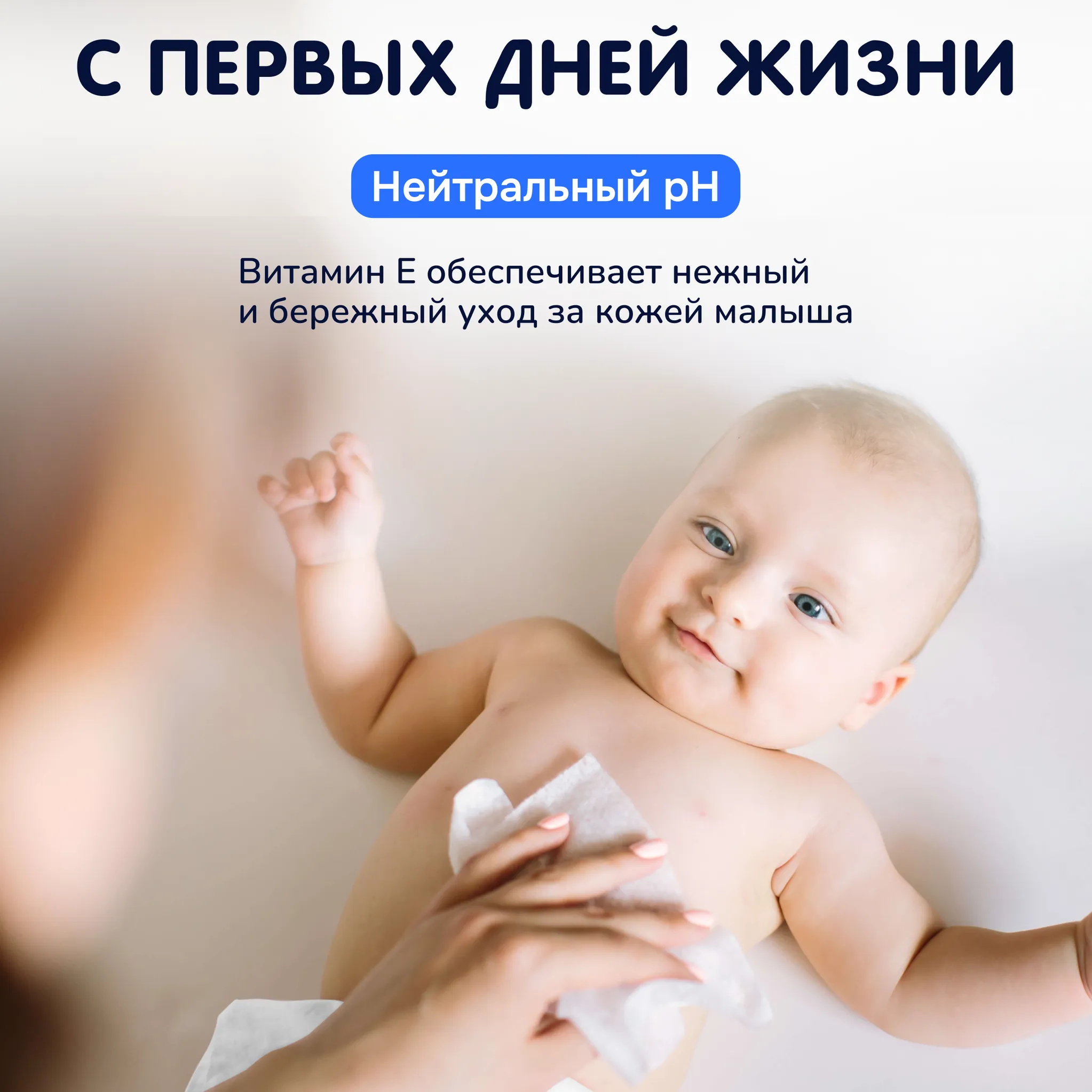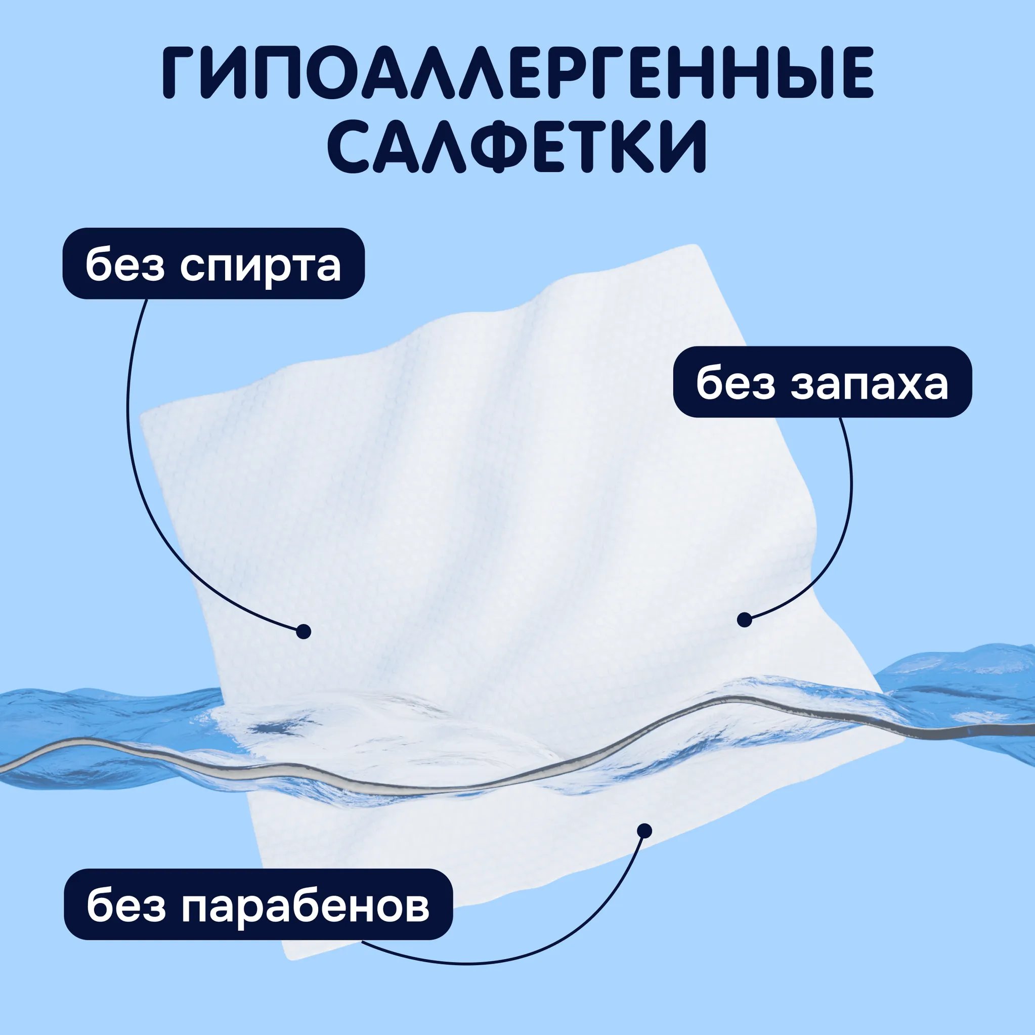 Салфетки созданы специально для нежной кожи ребёнка с первых дней жизни. Они изготовлены из нетканого материала и содержат только натуральные компоненты (вода — 99,8%). Благодаря этому, они не вызывают раздражения, покраснения и обезвоживания кожи.