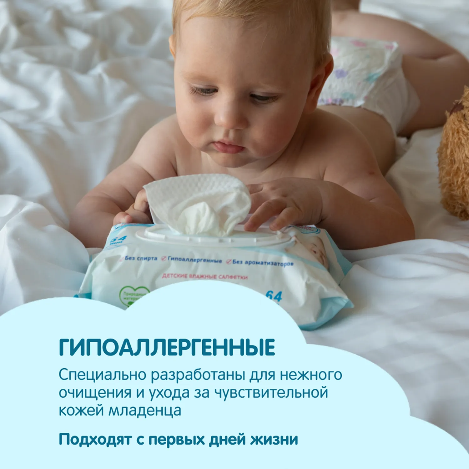 Делают ежедневную гигиену в любых условиях значительно комфортнее. Незаменимы дома, при смене подгузника, на прогулке, в поликлинике и путешествиях.