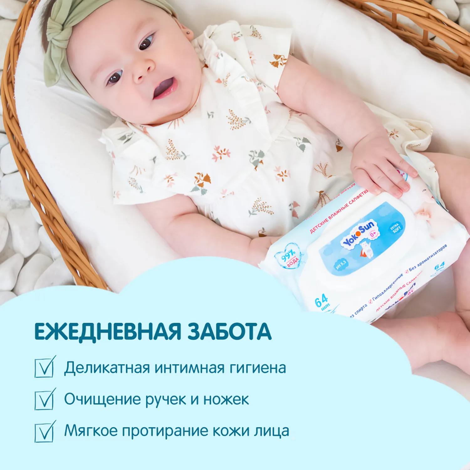 Детские влажные салфетки YokoSun специально разработаны для нежного очищения кожи малыша и одновременного эффективного ухода. Подходят для чувствительной кожи новорожденных. Имеют сертификат экологического соответствия "Эко".